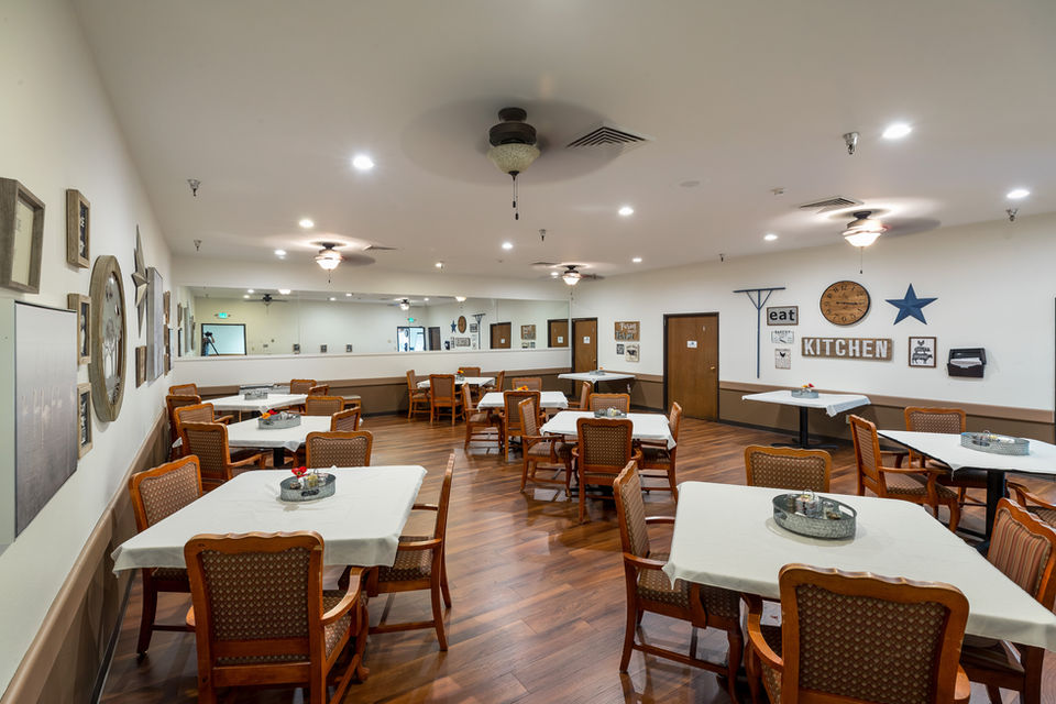 Designer Heather Lange created a comfortable, functional, safe and fun design for this retirement home. Bringing in nature photography made the hallways pop with excitement, while giving the feeling of taking a walk outdoors. This feeling was continued throughout the facility, including the reception area, dining hall, craft/media room, namaste inspired library, and the 50's themed recreation room.